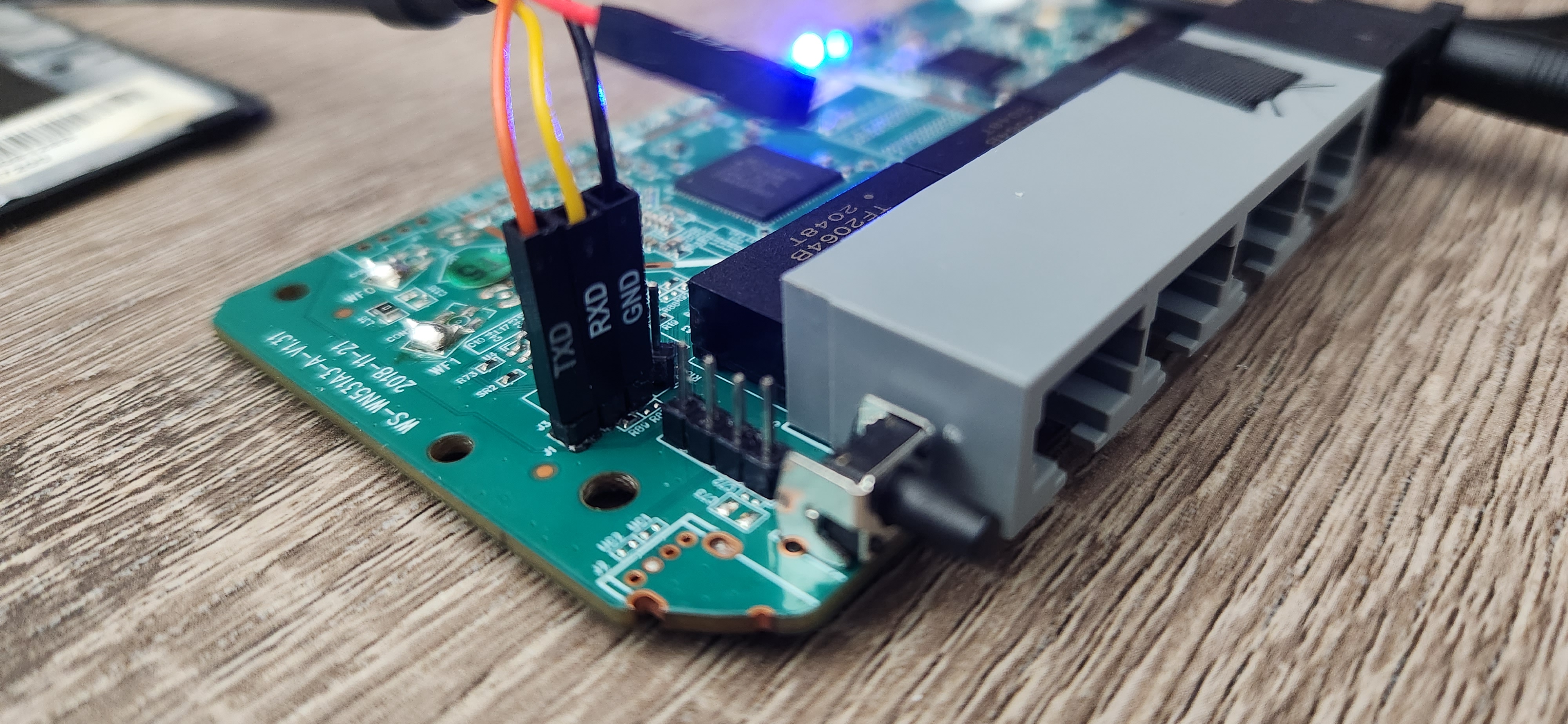 Trying 38400 didn’t seem to work either, however this discovery gave me confidence that an invalid baud rate was not the problem. This baud rate is consistent with other Wavlink models as seen in this writeup. The order of the UART pins also appeared to be the same but in reverse.